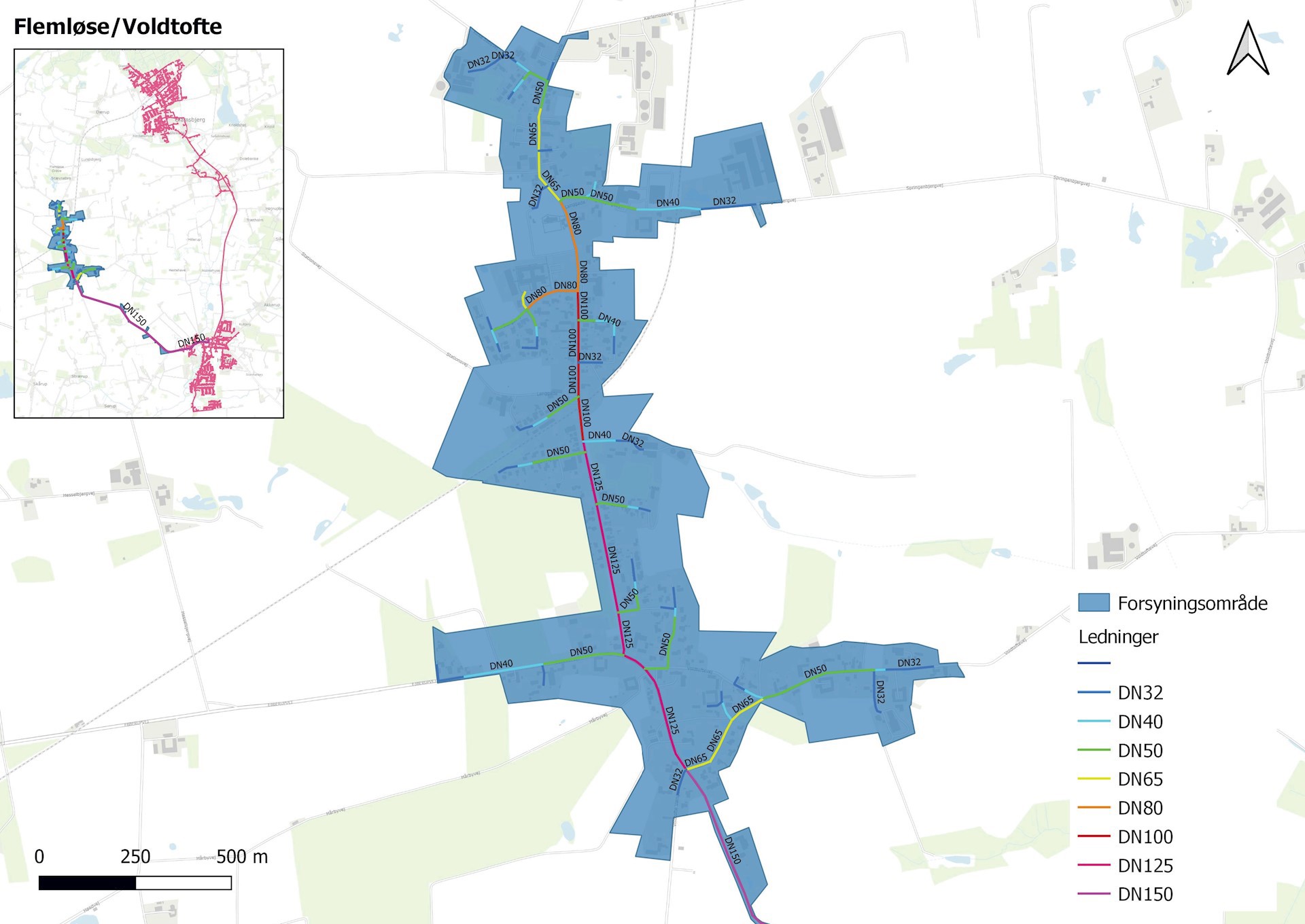 Konverteringsprojektet Flemløse og Voldtofte omfatter nedenstående forsyningsområde